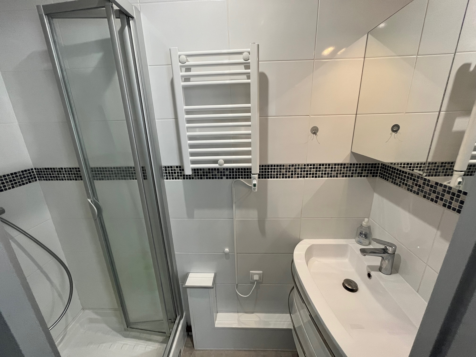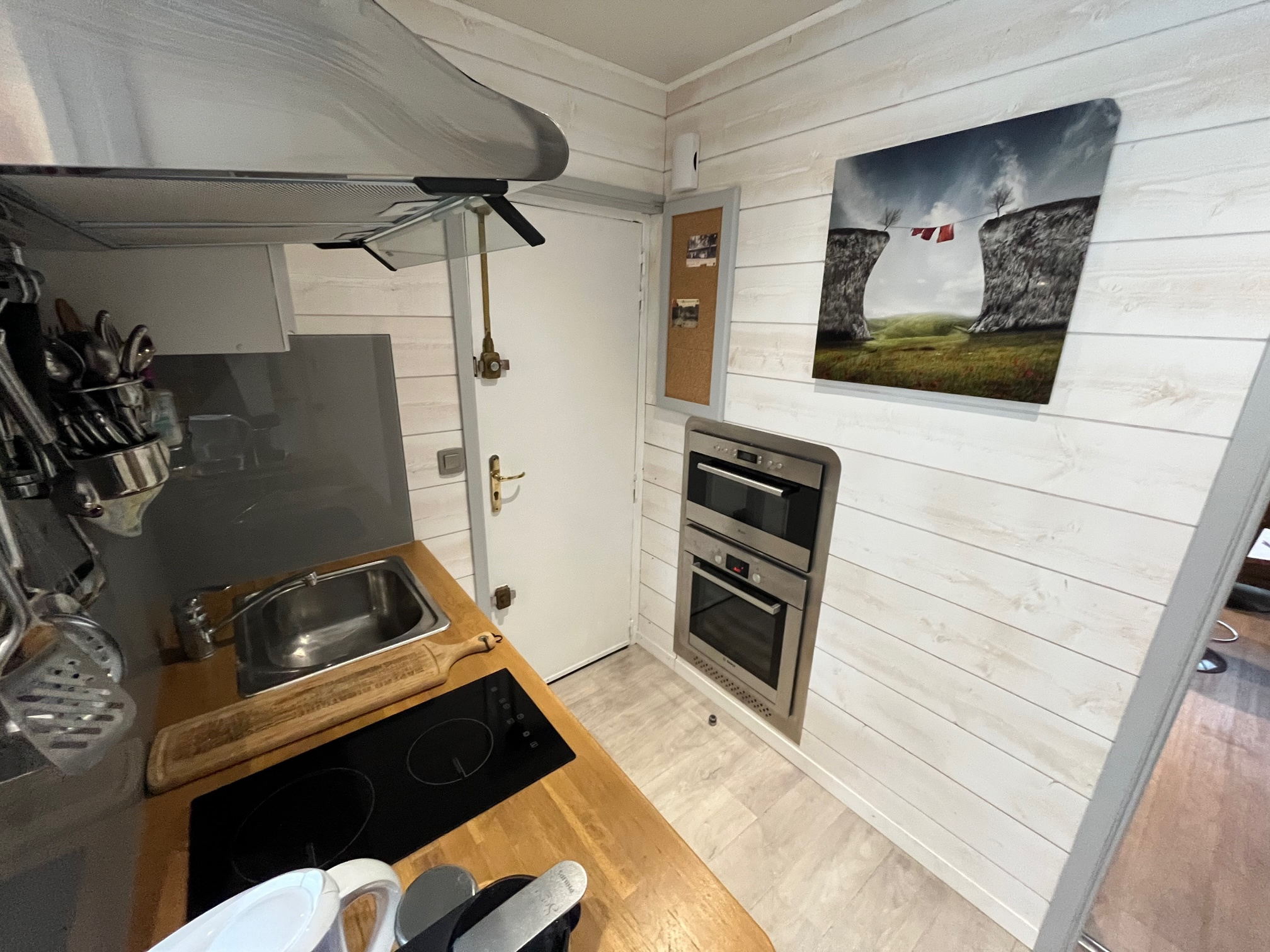 Agencement optimisé et aucune perte de place. Il dispose d'équipements complets et de qualité : plaque de cuisson, four et micro onde intégrés, machine à laver, espaces de rangements.